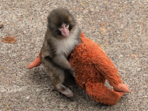 Детеныш обезьяны повсюду носит за собой плюшевую "маму", потому что настоящая его бросила. Видео