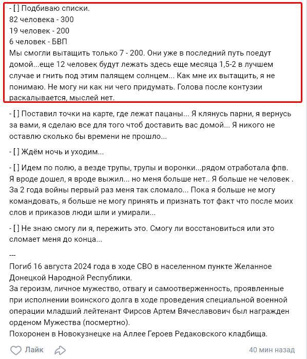 Но после боев он вел свой дневник, где описывал, какие потери несут его рота и весь батальон в нескончаемых "мясных атаках". Во время 10-дневного штурма одной посадки весь его батальон на глазах Фирсова погиб или получил ранения, и это морально сломило россиянина из Новокузнецка.