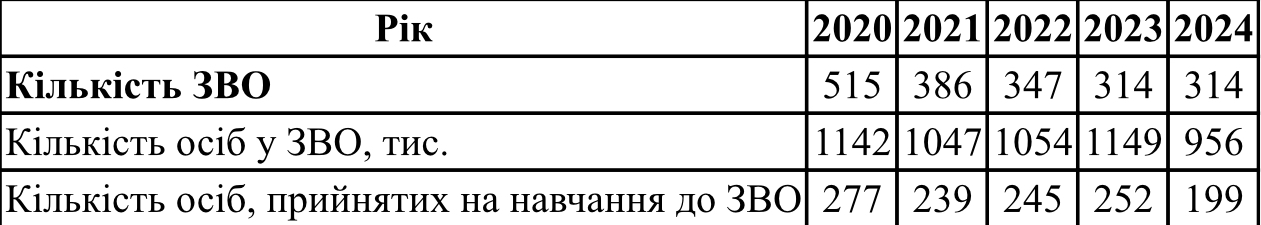 Количество субъектов образовательной деятельности и контингент получающих высшее образование в Украине в 2020–2024 годах