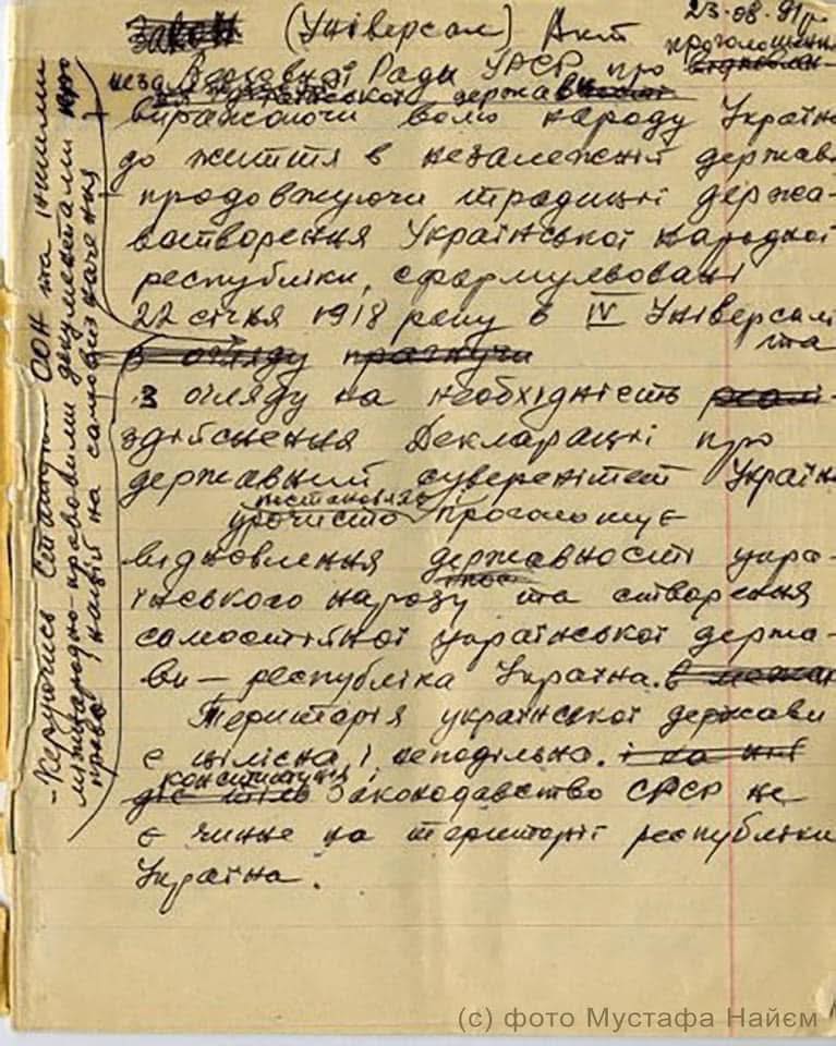 18 лет назад мне казалось, что эта история – скорее, журналистская находка. Я держал в руках пожелтевшую тетрадь в клеточку, в которой Левко Лукьяненко написал проект Акта независимости Украины. И тогда меня поразило, что судьба страны уместилась в дешевую тетрадь, купленную, возможно, в сельском магазине.