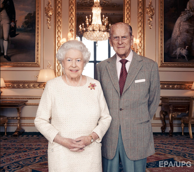 70-летний юбилей был отмечен звонами Вестминстерского аббатства и фотографированием венценосной пары в Белом зале Королевского дворца. Фото сделано на фоне портретов короля Георга III и принцессы Шарлотты, чей рекорд супружеской жизни был побит Елизаветой и Филиппом.
