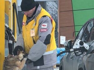 "Дайте ему премию за доброе сердце". Видео с участием мужчины и бездомного пса на заправке растрогало сеть