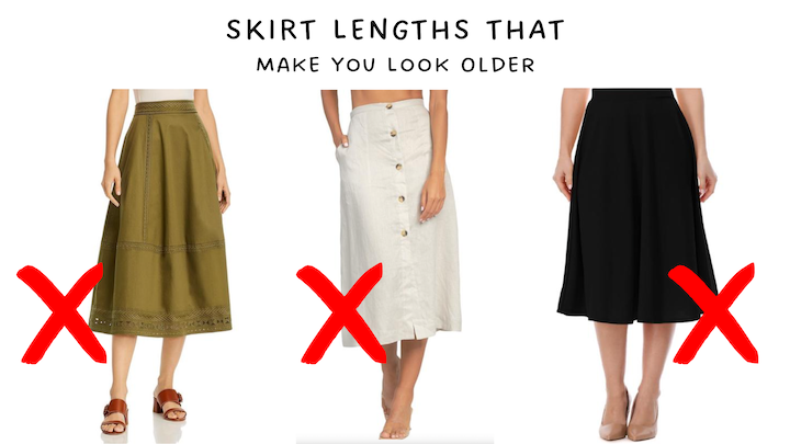 "Слишком длинные юбки действительно могут вас состарить и заставить выглядеть неряшливыми, отягощенными и просто несвежими, – считает Куин. – Если вы пытаетесь выглядеть моложе, я бы советовала избегать слишком длинных юбок".