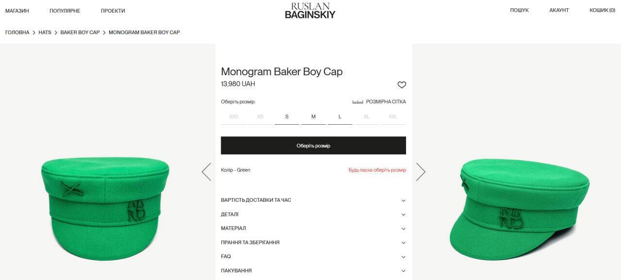 Стоимость этого головного убора на сайте бренда составляет почти 14 тыс. грн.