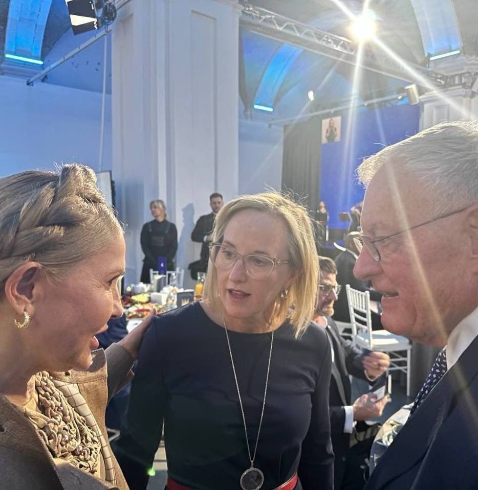 На другом снимке она запечатлена в компании спецпредставителя президента США Дональда Трампа по вопросам Украины Кита Келлога и временной поверенной в делах США в Украине Джулии Дэвис.