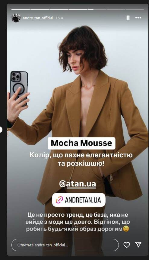 Он заявил, что цвет Mocha Mousse, который американский институт цвета Pantone определил главным цветом 2025 года, является базовым в гардеробе и еще долго не выйдет из моды.