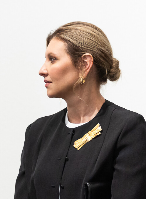 Если раньше Зеленская предпочитала классическую укладку на длинных волосах, то сейчас все чаще появляется как на камерных, так и на официальных мероприятиях с волосами, собранными за затылке либо в хвост, либо в пучок.