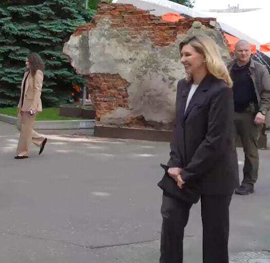 Зеленская часто появляется на публике именно в этом костюме. В частности, в этом же наряде в августе 2024 года она посещала Черниговскую область.