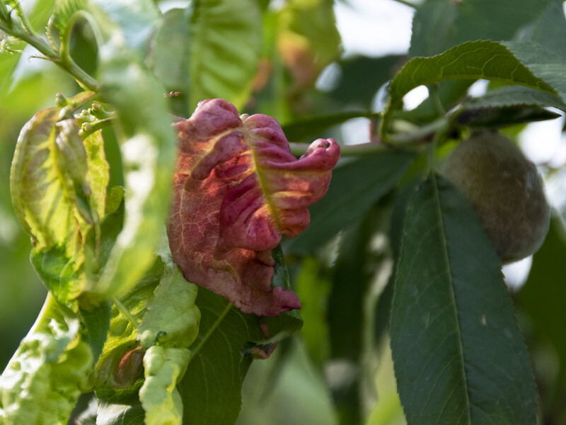 Одно из самых опасных заболеваний персиков и нектаринов – курчавость листьев. Его вызывают споры гриба Taphrina deformans, которые особенно активируются в условиях влажной погоды с резкими перепадами температуры со среднесуточным показателем +6…+8 °С.