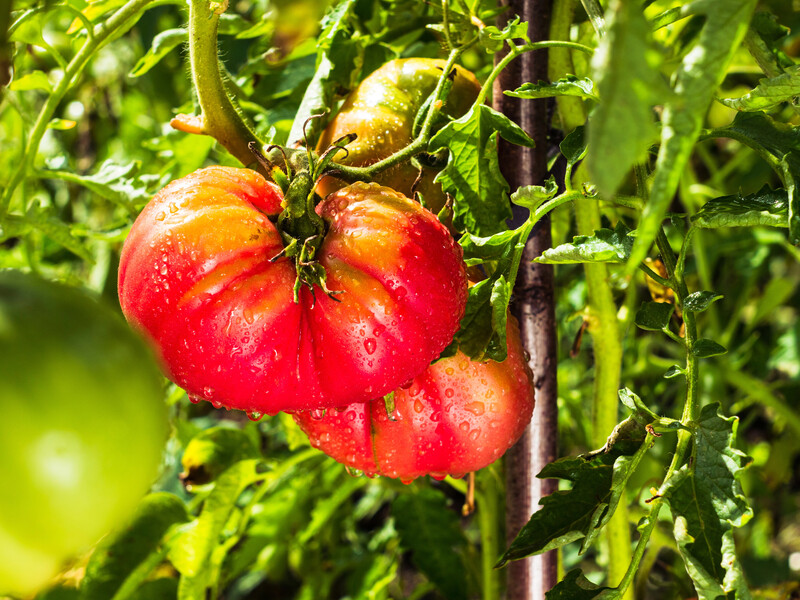 Соседи томатов на грядке тоже имеют значение. Не стоит сажать рядом капусту, укроп, кукурузу или баклажаны – больших плодов возле этих культур не ждите. А вот лук, чеснок, бобовые (нут и фасоль), морковь, свекла, огурцы и пряные травы (базилик, чабрец, шалфей и т.д.) не только способствуют росту, но и защищают от вредителей.
