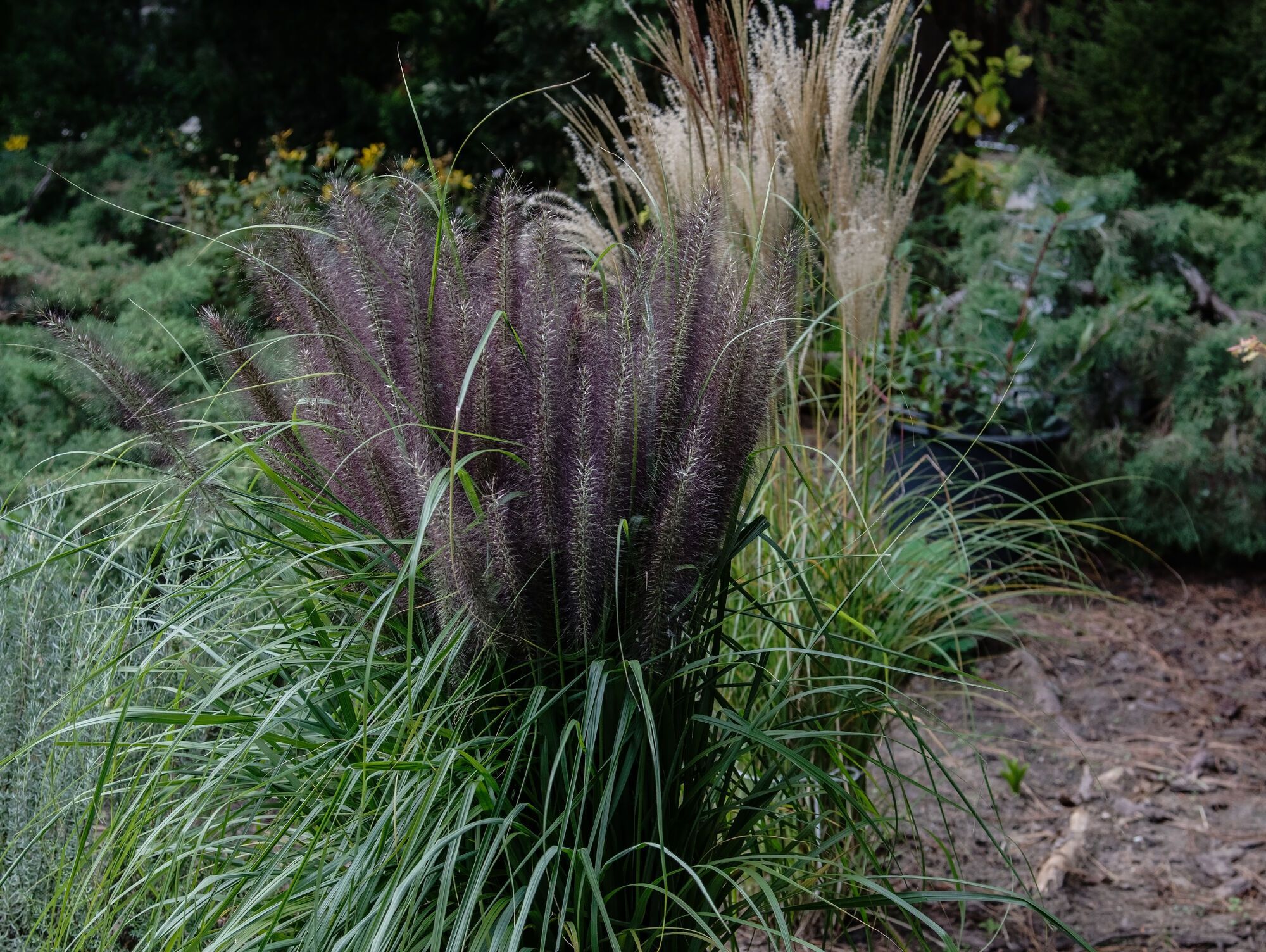 Пенисетум (Pennisetum) – это пушистые нежные колосья, имеющие особенно эффектный вид осенью. Красивы в группах или на бордюрах.