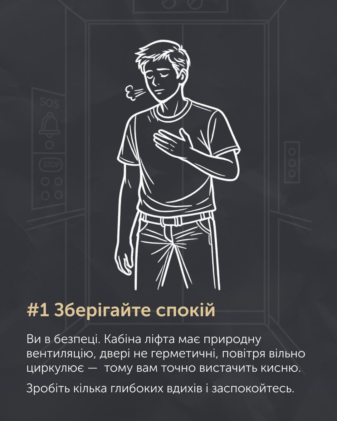 Разработчики лифтов посоветовали сделать несколько глубоких вдохов, чтобы успокоиться.
