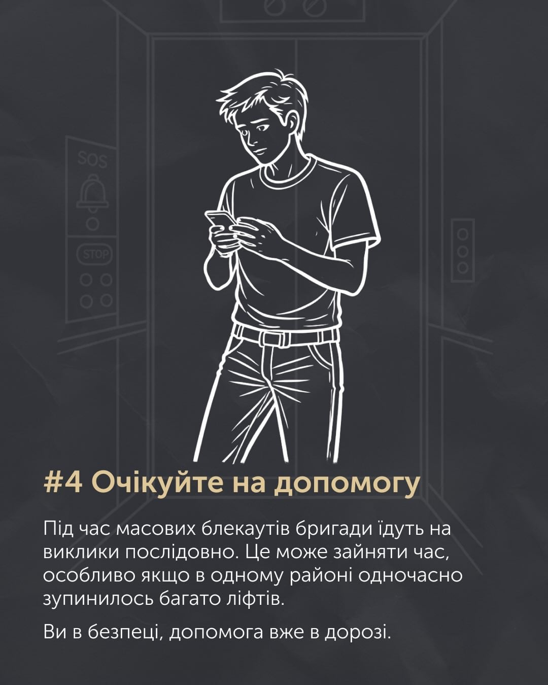 "Лифт остановился во время блэкаута? Первое, что важно знать, – вы в безопасности. Кабина лифта имеет вентиляцию, дверь не герметичная, а кислорода точно хватит", – отметили в статье.