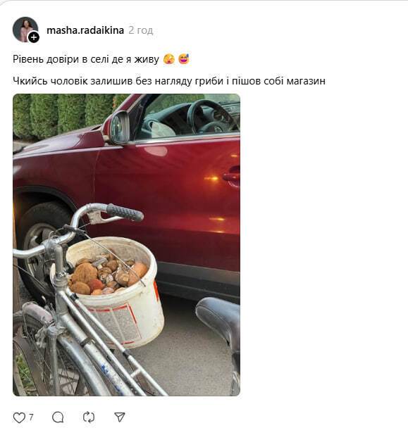 "Уровень доверия в cеле, где я живу. Какой-то мужчина оставил без присмотра грибы и пошел себе в магазин", – шокированы в сети.
