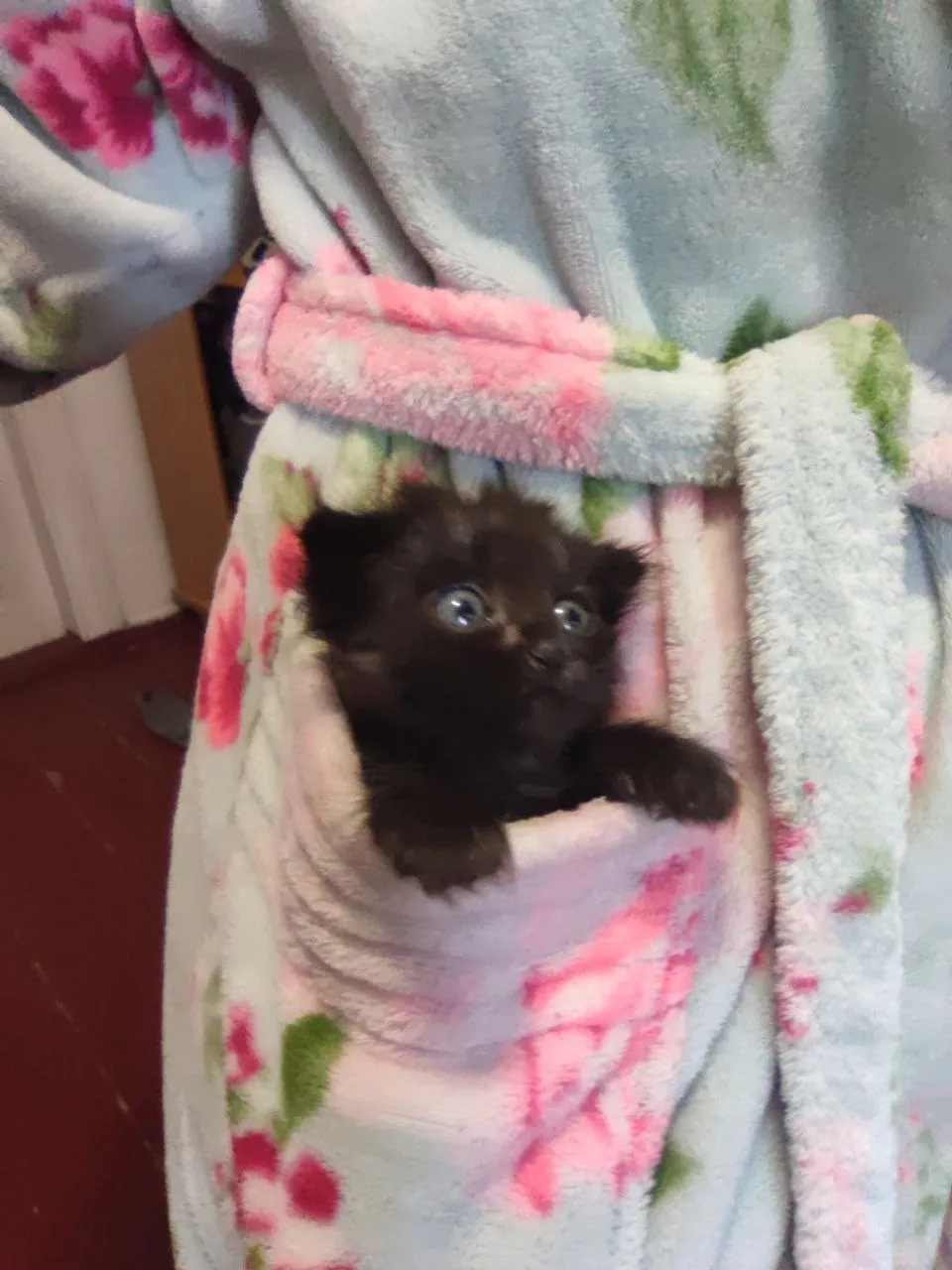 А этот котенок любит сидеть в кармане халата своей хозяйки.