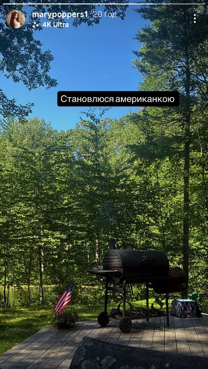 Она показала фото, на котором зафиксировала барбекю и флаг США на фоне деревьев и водоемов.