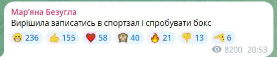 Украинский нардеп Марьяна Безуглая 20 декабря в Telegram написала, что планирует заняться спортом.