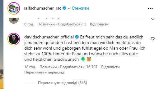 Сын автогонщика от брака с немецкой телеведущей Корой Шумахер, 22-летний Давид Шумахер отреагировал на публикацию отца.