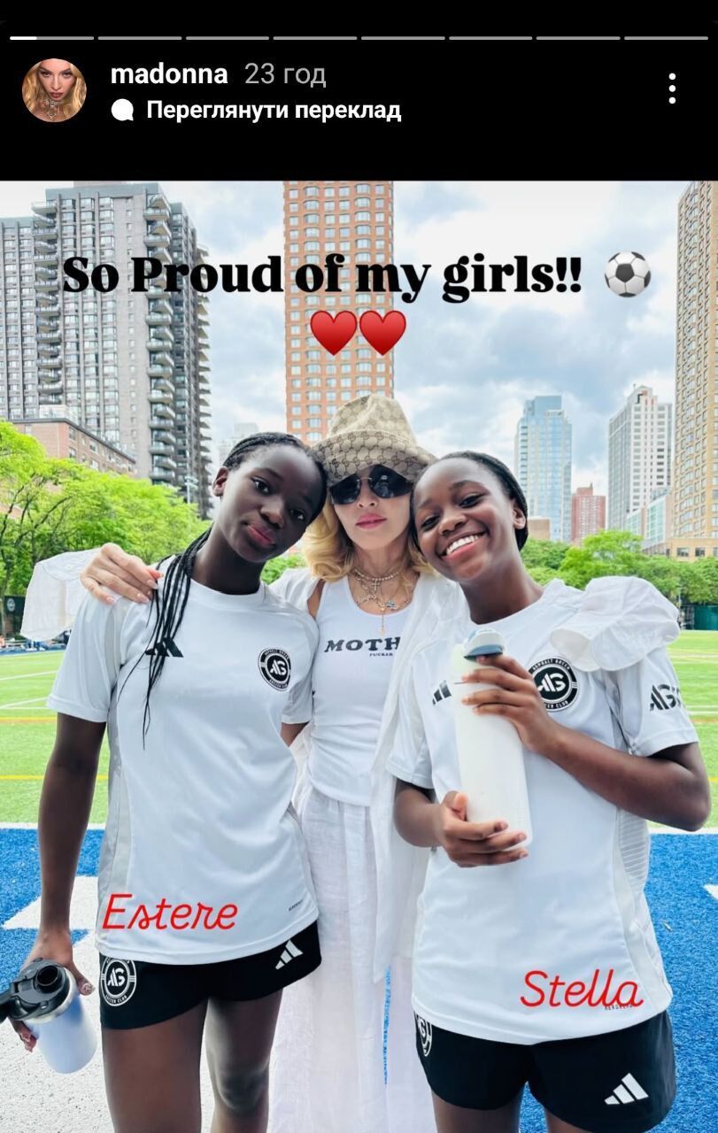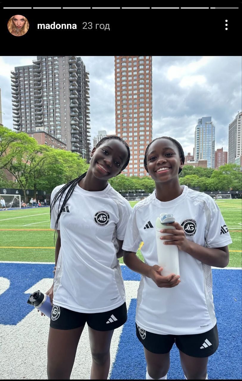 Мадонна в сообщении указала страницу нью-йоркского футбольного клуба, в котором играют ее приемные дочери.