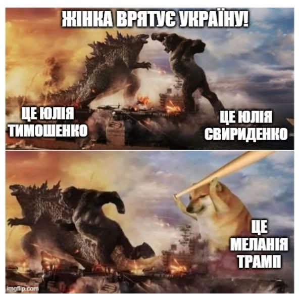 Пользователь сети Х под ником Пороблено опубликовал мем о трех женщинах, которых в последние дни украинцы обсуждают в соцсетях больше всего: Меланью Трамп, экс-премьера Украины Юлию Тимошенко и первого вице-премьера Украины Юлию Свириденко, которая может стать следующим премьером. Кажется, Меланья Трамп с битой в руках феерически побеждает.