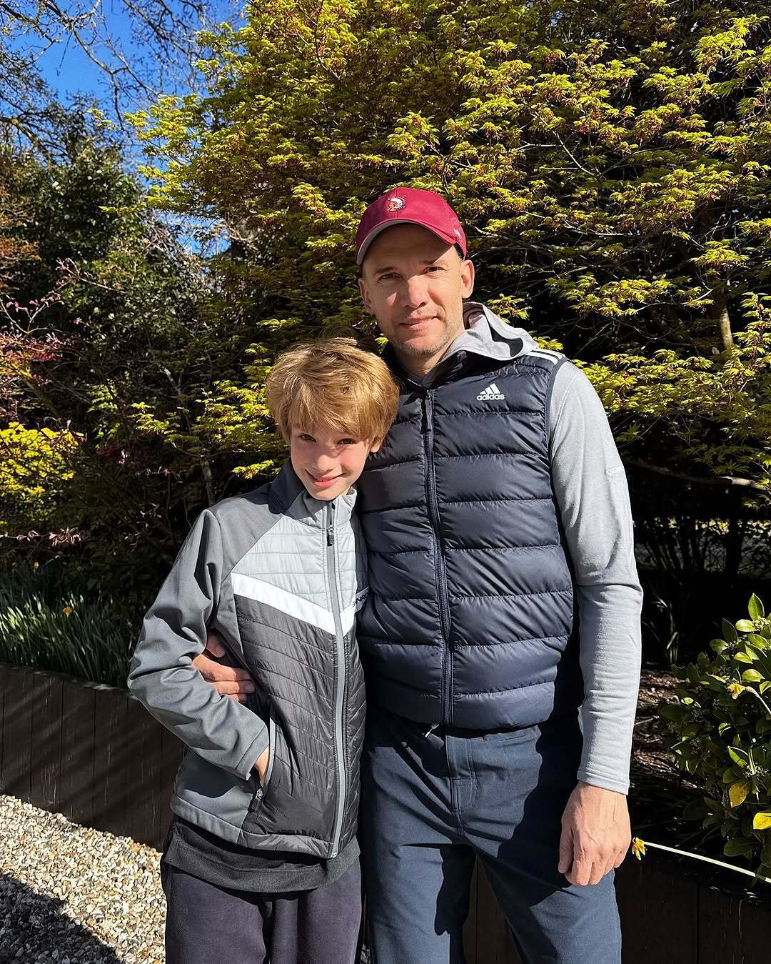 Он обнародовал совместное с сыном фото, на котором они позируют на фоне деревьев.