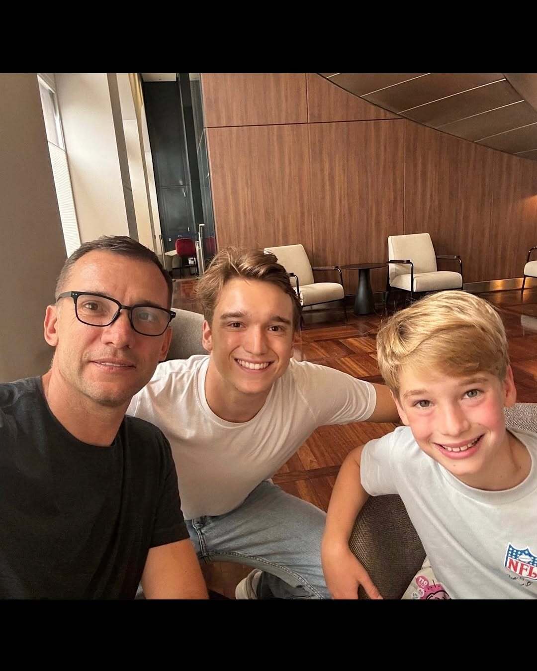 Шевченко также добавил фотографию, на которой он зафиксирован со старшим сыном Джорданом и младшим Райдером-Габриэлем.