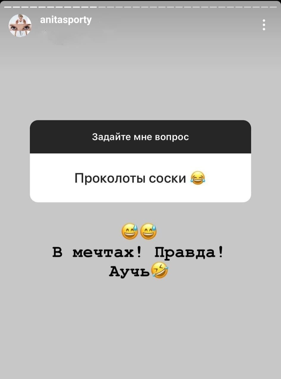 Бывший тренер проекта "Зважені та щасливі" на СТБ, фитнес-инструктор Анита Луценко 19 января, отвечая на вопросы подписчиков в Instagram Stories, призналась, что мечтает проколоть соски.