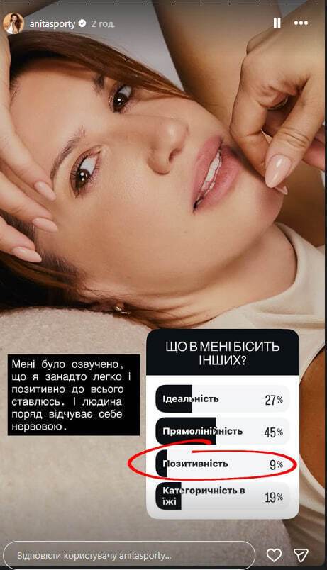Украинский тренер Анита Луценко имеет в своем характере черту, которая бесит ее окружение. Об этом она рассказала 22 декабря в Instagram Stories.