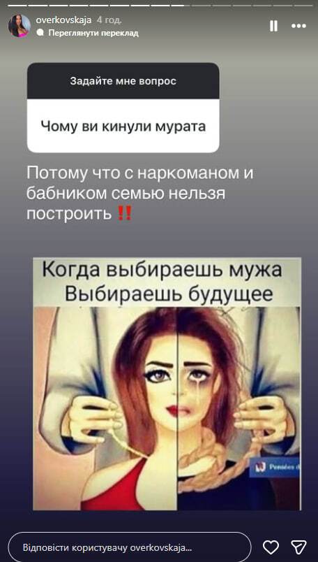 "Почему вы бросили Мурата?" – спросили у Оверковской подписчики.