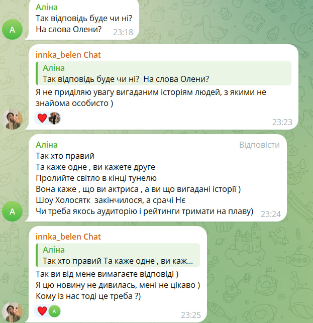 Отвечая на вопросы подписчиц, Белень заявила, что не будет уделять внимание "выдуманным историям людей, с которыми не знакома лично".