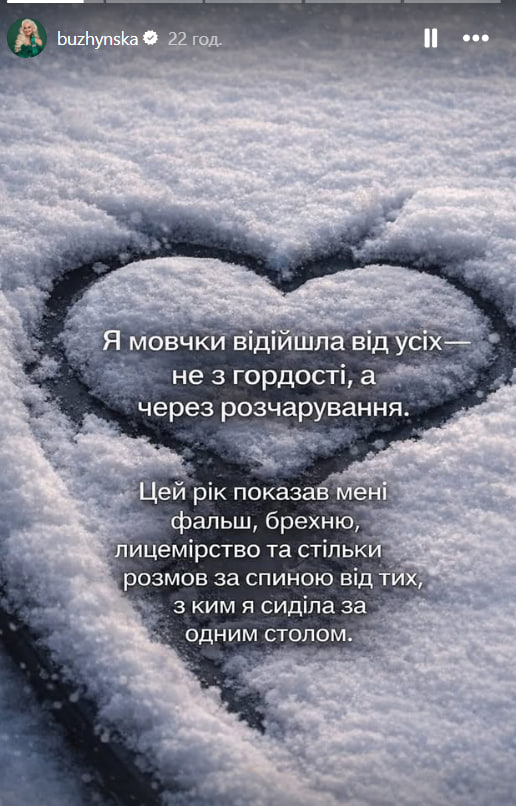 Украинская певица Катерина Бужинская 10 февраля в Instagram Stories откровенно высказалась о лицемерных людях в своем окружении.