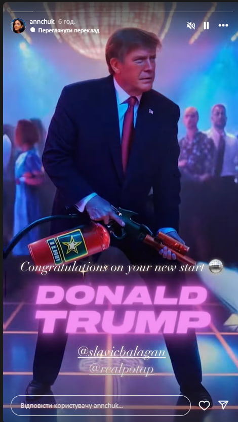 Андрийчук также разместила репост публикаций Потапа на своей странице в Instagram Stories.