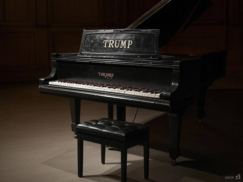 Коллектив студии опубликовал фото, на котором изображены рояль черного цвета и черная банкетка. На музыкальном инструменте надпись "Trump".