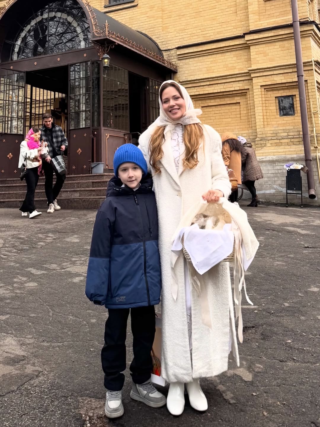 Денисенко показала, как святила паску с новым возлюбленным, моделью Юрием Савранским, а также со своим сыном от брака с украинским актером Андреем Фединчиком Андреем.