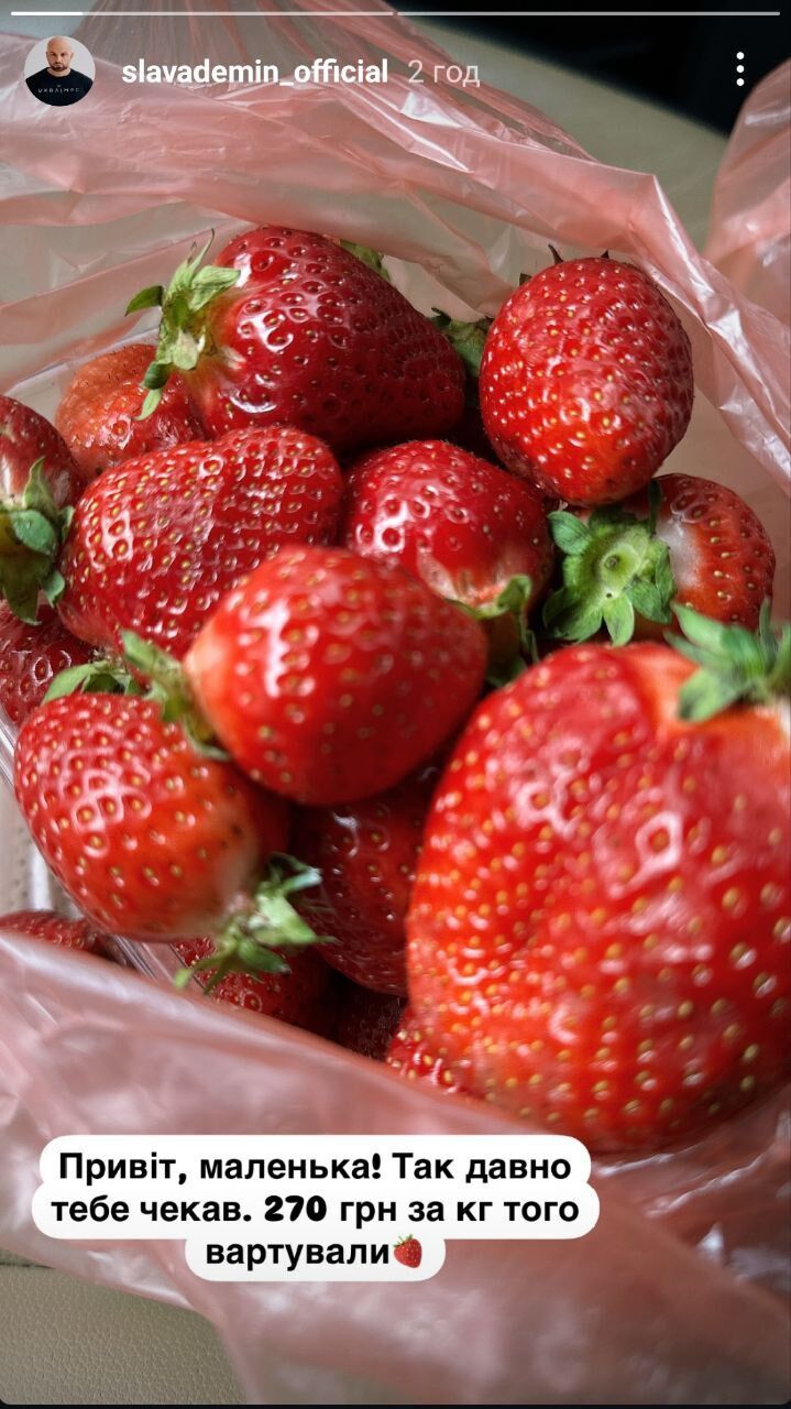 Украинский ведущий Слава Демин 27 мая в Instagram Stories показал фото купленной клубники.