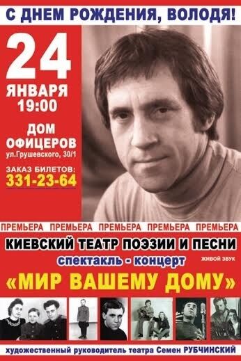 24 января, накануне дня рождения актера и исполнителя собственных песен Владимира Высоцкого в киевском Доме офицеров состоится спектакль его памяти.