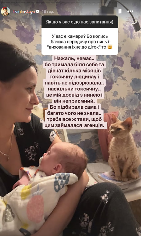Победительница шоу "МастерШеф 2" на СТБ, украинский кулинарный блогер Елизавета Глинская 28 марта, отвечая на вопросы подписчиков в Instagram Storeis, рассказала о неудачном опыте сотрудничества с няней, которая присматривала за ее детьми.