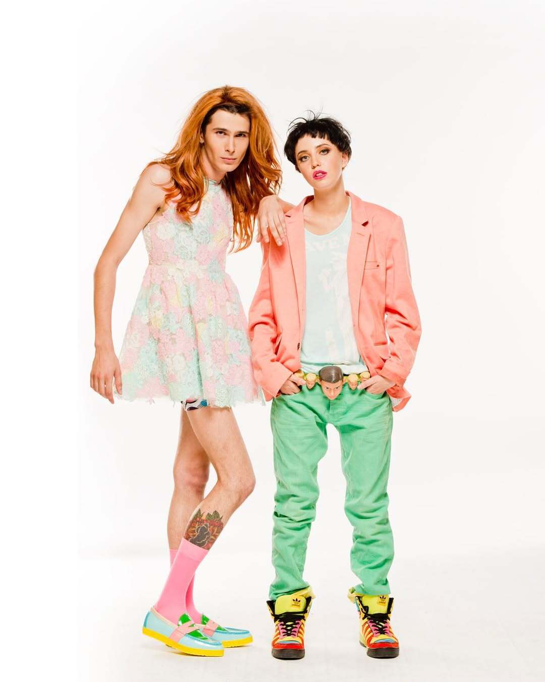 Также Дорофеева показала фотографию, на которой Позитив позирует в платье и в парике, а она одета в брюки и пиджак.