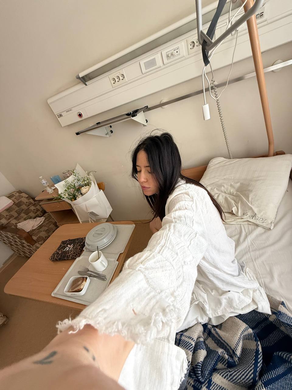 Свой пост она проиллюстрировала снимком, на котором запечатлена в больничной палате.
