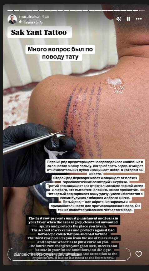 Украинский бизнесмен турецкого происхождения Мурат Налчаджиоглу 15 января в Instagram Stories разместил фото, на котором запечатлен во время нанесения нового тату на спину.