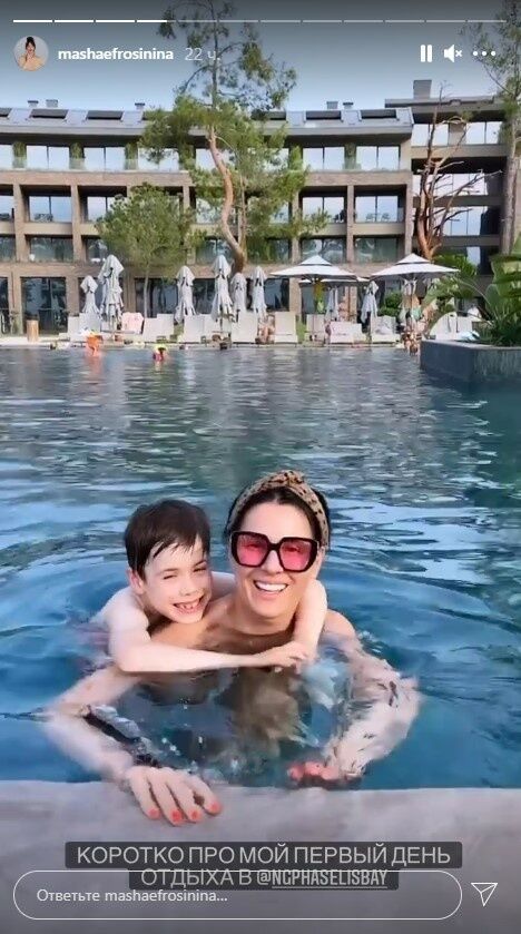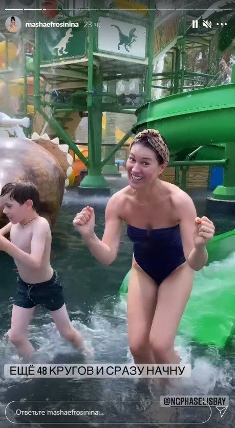 Также Ефросинина в Instagram Stories показала, как отдыхает в аквапарке с сыном.