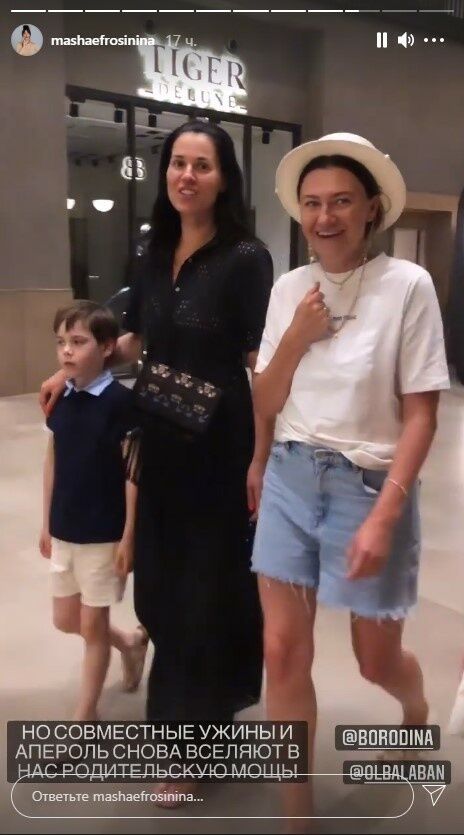 Компанию Ефросининой составили бизнесвумен Лера Бородина и маркетинг-директор "Нового канала" Ольга Балабан, которая также является крестной матерью Александра.