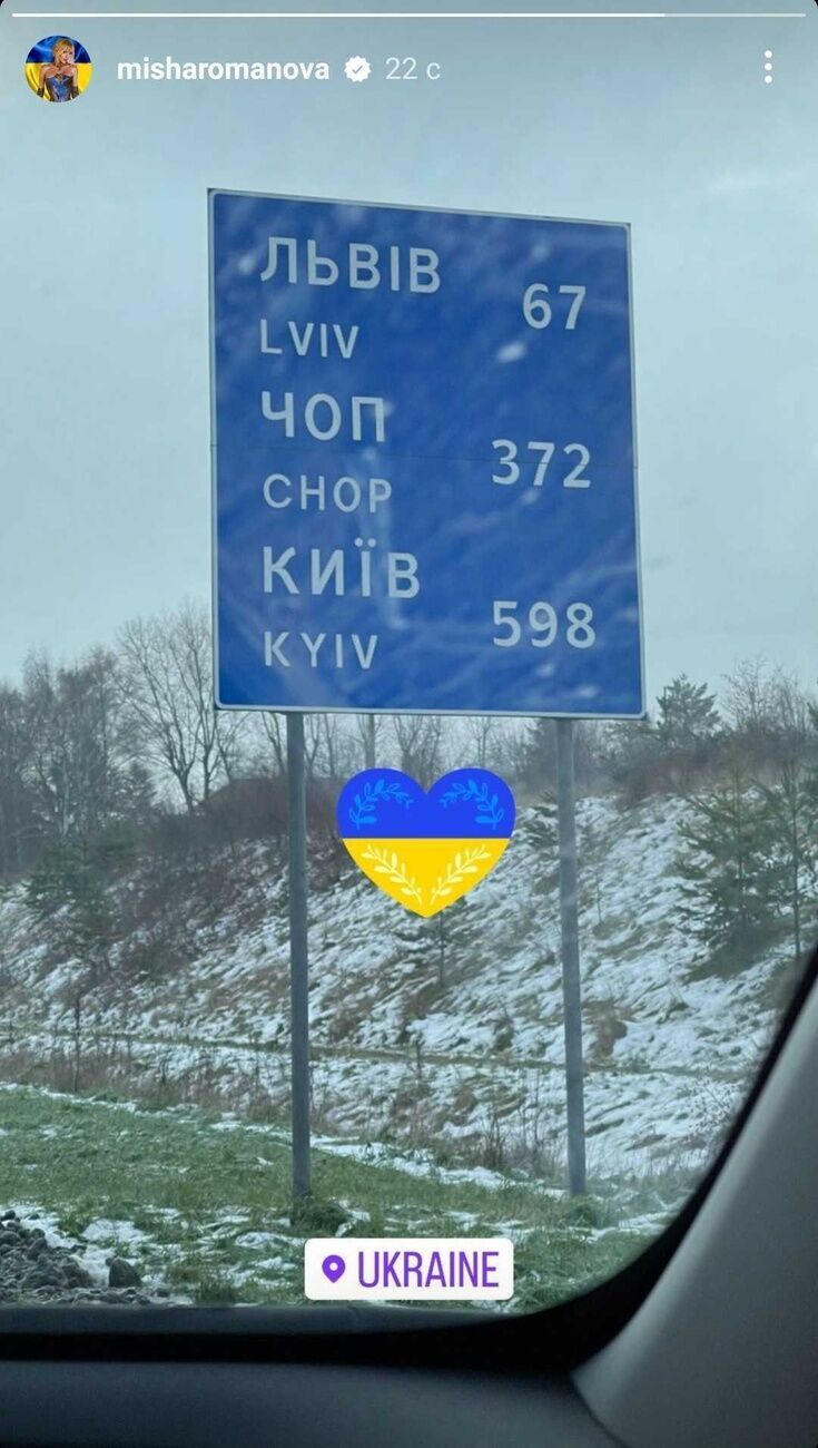 Сперва певица опубликовала фото дорожного указателя, которое сделала из окна авто за 76 км до Львова.