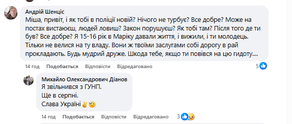 "Я уволился из ГУНП. Еще в августе. Слава Украине", – написал он.