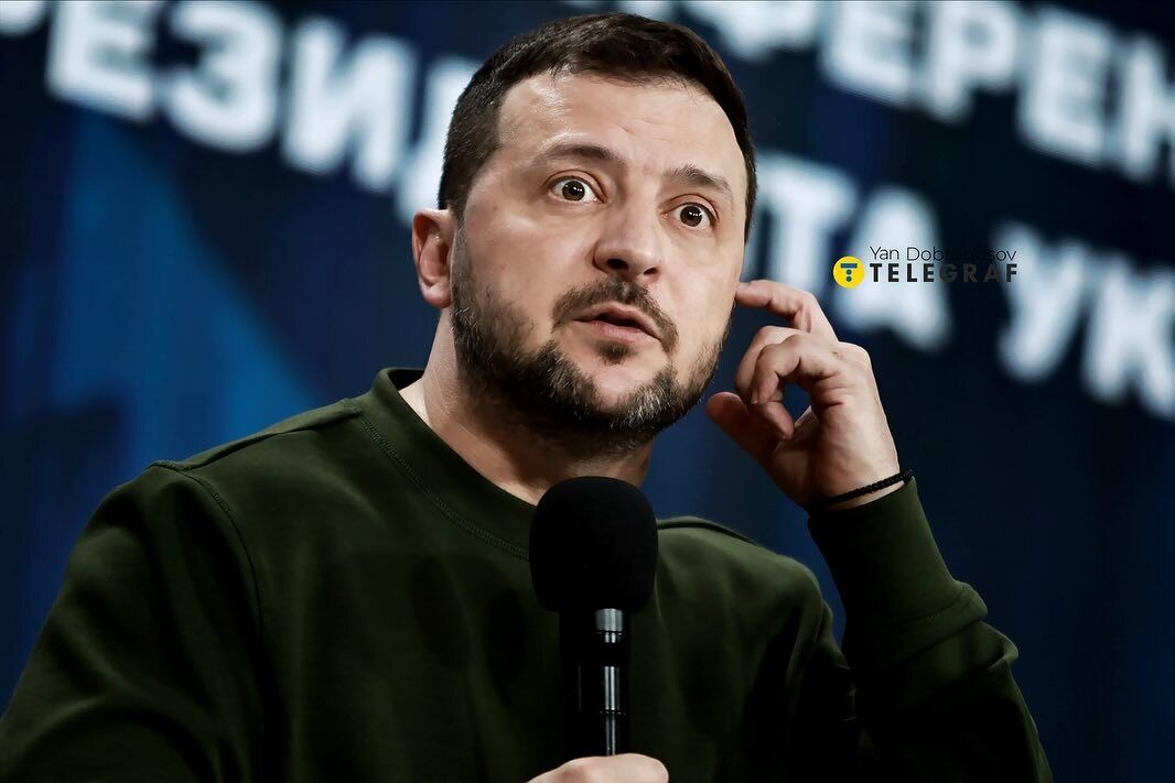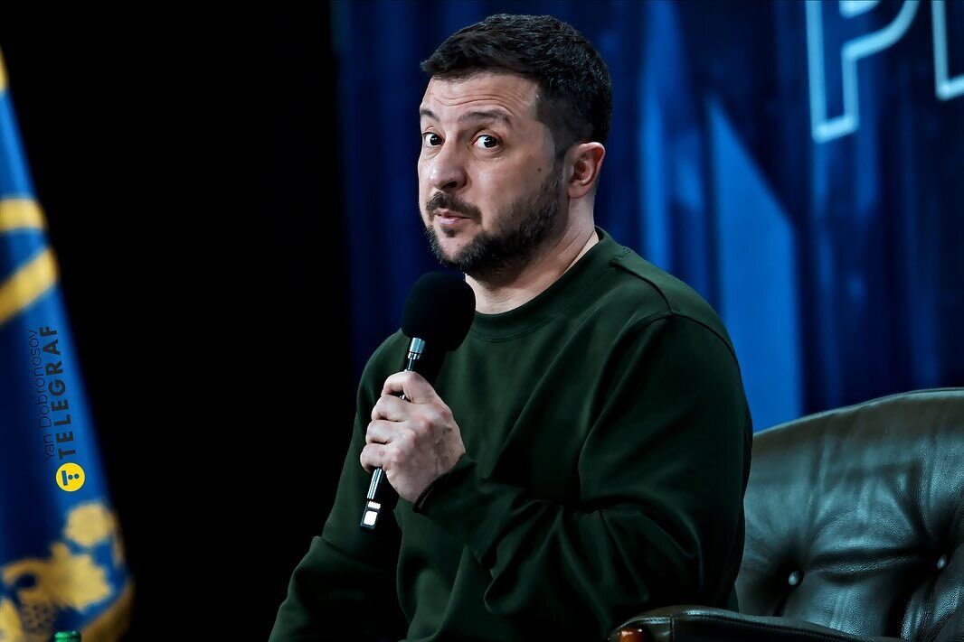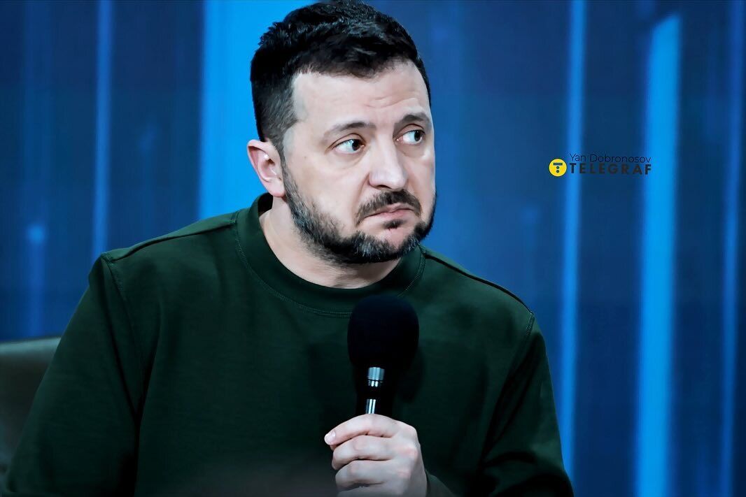 Украинский президент Владимир Зеленский 25 февраля провел пресс-конференцию "Украина. Год 2024". Фото президента, запечатленного во время общения с журналистами, в Instagram разместил украинский фотограф Ян Доброносов.