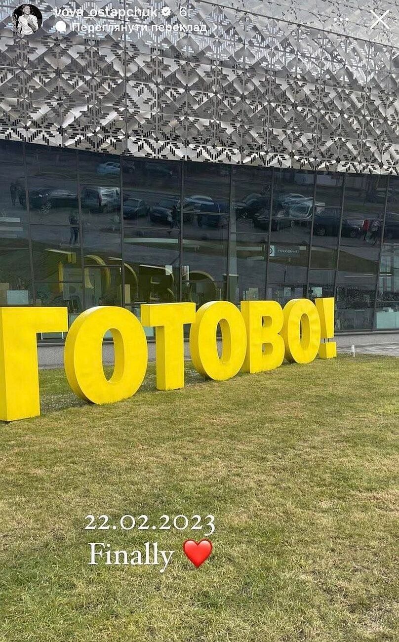 Украинский телеведущий Владимир Остапчук в Instagram Stories 22 февраля опубликовал фото с надписью "Готово!", которую сопроводил датой 22 февраля 2023 года и символом "сердце".