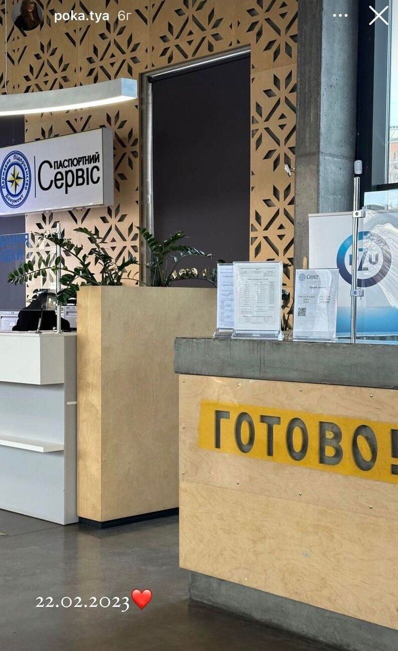 Украинская журналистка Екатерина Полтавская, которой приписывают роман с Остапчуком, разместила в Instagram Stories подобное фото. Она показала снимок, сделанный в паспортном сервисе, также с надписью "Готово!", датой 22 февраля 2023 года и символом "сердце".