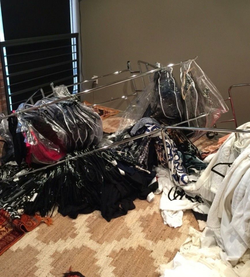 Она опубликовала фото разгромленной гардеробной в Stories Instagram.