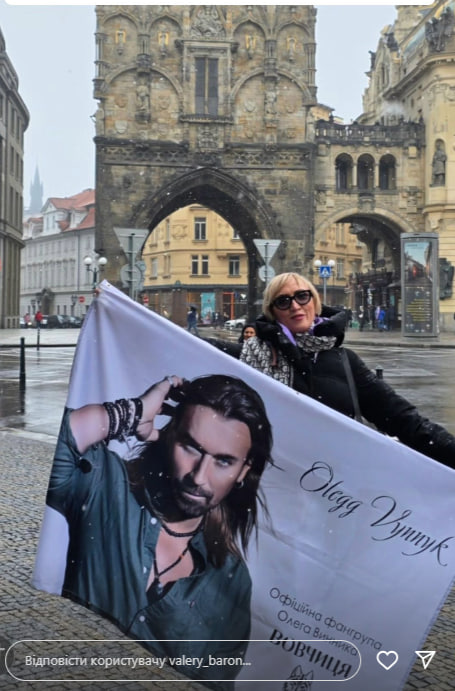 Валерия Барон – одна из самых преданных поклонниц сбежавшего за границу украинского исполнителя песен Олега Винника, а также основатель и руководитель его фан-клуба "Волчицы" – 12 февраля разместила в Instagram Stories фото, на котором запечатлена в Праге.
