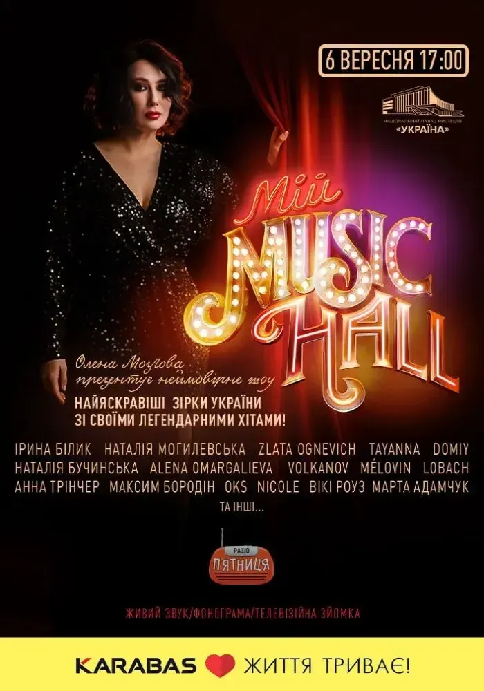 "Живой звук, феерические постановки, телевизионная съемка – все это "Мой Music Hall", – добавила Мозговая. – Не пропустите главное музыкальное событие осени".